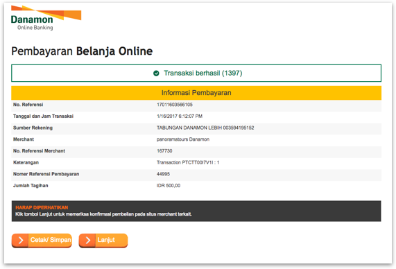 Merchant, Setelah selesai dan proses dinyatakan "Success" atau "Sukses" dan mengirimkan konfirmasi berhasil